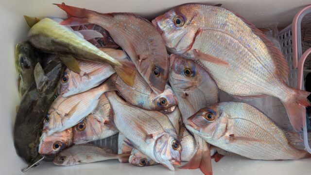 その後潮が流れ始めたら真鯛が釣れる釣れるで皆さん忙しそうに釣りをしていました。