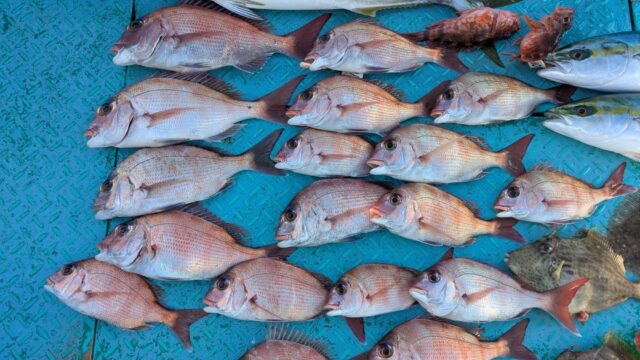 「待ってました!」と言わんばかりにチャリコの猛攻撃それをかわしながら上手にちょうどいいサイズの真鯛とハマチを釣っていたのですが……