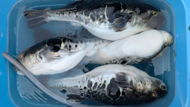 大きなトラフグが上がってきました。