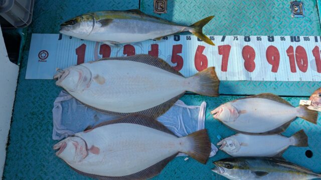 潮がトロトロと流れている間はアタリもあってヒラメやコチにハマチがたまポツで釣れていました!