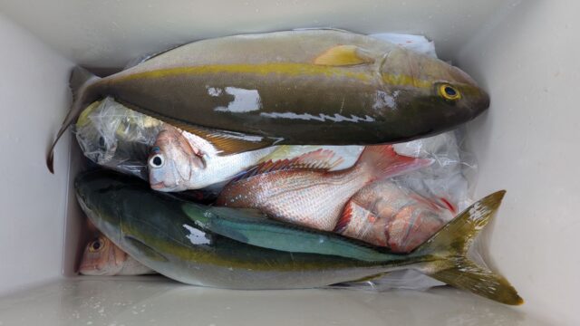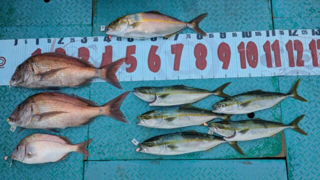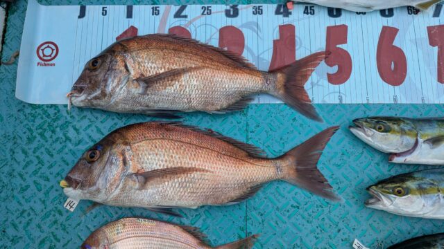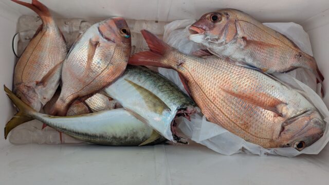 ハマチやカンパチも交ざって釣れていて、いいサイズの真鯛もしっかりと釣ってくれました!