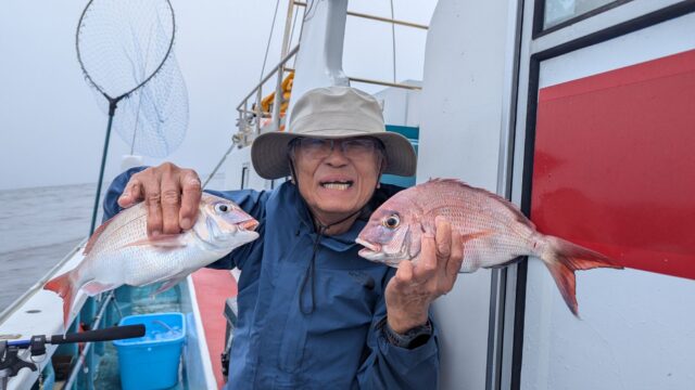 おかげで、大きなアジと30〜40センチ弱の真鯛がちらほらと釣れてなんとかお土産だけは確保できました。